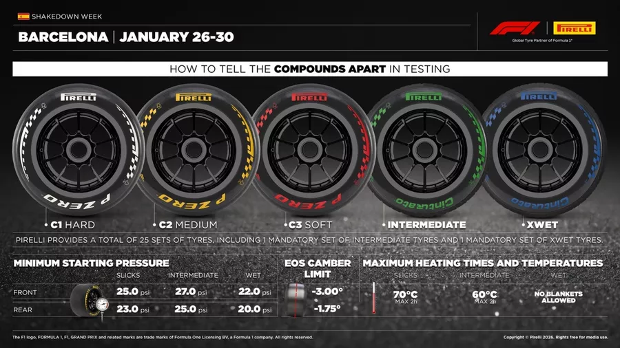 Shakedown Formula 1 di Montmelo akan dimulai di mana setiap tim dapat memilih tiga hari dari lima hari untuk turun ke lintasan dan memulai persiapan serta pengembangan mobil mereka untuk musim 2026. Di lintasan Catalan, yang akan dikhususkan untuk tim Formula 1 dan aksesnya dilarang bagi siapa pun (ini adalah tes tertutup), Pirelli akan membawa tiga campuran terkeras dari jajarannya untuk musim baru F1.