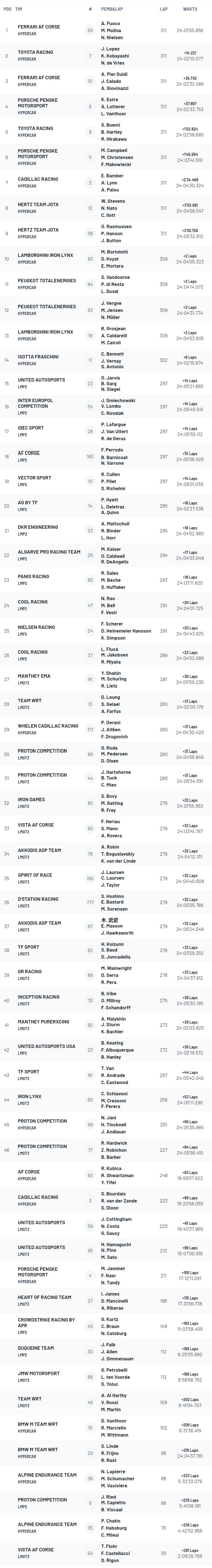 Hasil Le Mans 24 Hours 2024 :