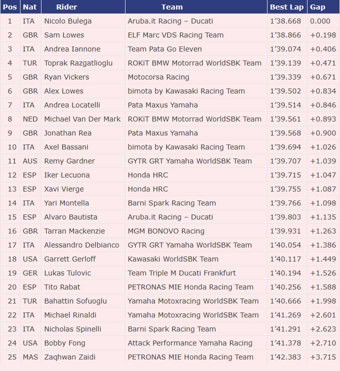 Hasil FP2 WSBK Spanyol 2025 :