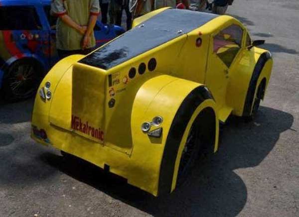 ![]() Sejumlah mahasiswa Fakultas Teknik Universitas Muhammadiyah Malang (UMM) menciptakan mobil masa depan yang diklaim ramah lingkungan. Sekelompok mahasiswa yang menamakan diri Tim Wor 64 itu, mengaku berhasil membuat mobil setangguh tokoh fiktif dalam film Transformers berbahan bakar solar. Mereka, bahkan bermimpi, kelak mobil irit ini bakal didukung pemerintah serta dilakukan produksi secara massal. "Mobil kami ini sangat ringan, konsumsi BBM (bahan bakar minyak)nya super hemat. Satu liter 50 kilometer pakai solar," kata Medik Agus Prasetyo, Manajer Tim WOR 64, di Universitas Muhammadiyah Malang, beberapa waktu yang lalu. WOR 64 adalah mobil dengan berat sekira 80 kilogram. Mobil berkelir kuning itu hanya mampu menampung satu orang penumpang saja. Bodi mobil, dibuat dengan menggunakan serat fiber. Sementara itu, rangkanya menggunakan aluminium yang ringan namun kuat. Rupa mobil terbilang unik, karena menyerupai jenis city car. Namun, WOR 64 tidak memiliki moncong di bagian depannya. Seluruh mesin berada di belakang kemudi. Sekilas mobil ini seperti terbalik, bagian yang menyerupai moncong mobil adalah bagian belakang, sementara bagian yang mirip bumper adalah tempat pengemudi di depan. [w33] Berita Terkait Lainnya :