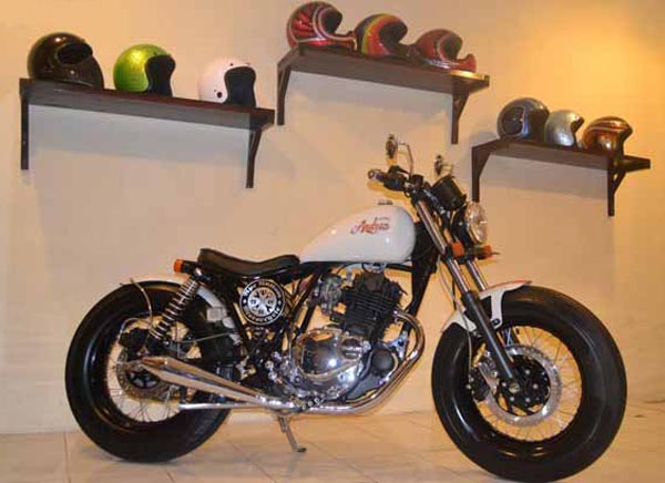 ![]() Tampilan motor yang mengacu pada konsep bobber, tentu identik dengan ubahan serba besar dan membulat. Paling kentara terlihat ada di sektor kaki-kaki, yaitu dengan menerapkan ban model gambot. Konsep bobber akhirnya disasar Gede Suandika untuk Suzuki Thunder 250 lansiran tahun 2000 miliknya. Sesuai dengan tujuan awalnya, pria yang bekerja sebagai Financial Controller di The Brezzes Resort & Spa, Bali, lantas coba order untuk proses restorasi Thunder pada Yudi Satria, builder Ape Kustom Motorcycle (AKM), yang ngendon di Jl. Perjuangan, No. 70, Cirebon, Jawa Barat. Pilihan ke AKM, karena workshop ini dikenal gape soal modif klasik ol skool. "Intinya, pemilik motor ingin lebih menonjolkan nuansa bergaya bobber yang dianggap sudah klop sesuai postur tubuhnya. Makanya, Thunder kemudian dibuat makin padat berisi lagi dari bermacam sudut. Mulai dari unsur bodi, hingga bagian kaki-kaki yang menopang segi tampilannya tersebut," ungkap Yuza, sapaan mesra modifikator berambut panjang ini. Untuk proyek modifnya kali ini, Yuza terlebih dulu fokus pada sektor 'tulang' asli bawaan Thunder yang dianggap terlalu panjang. Akibatnya, rangka bagian tengah yang berada di bawah dudukan tangki dipapas. Setelah itu, dipasang lagi pipa bahan galpalum yang dibuat sedikit melengkung buat dudukan jok rider. Sedangkan untuk buritannya, posisi boncenger sengaja tidak dipasang. Karena hanya ingin menerapkan jok model egois alias single seatter, yang merupakan ciri lain dari bobber. "Tujuannya, guna mengejar kesan lebih ringkas. Terutama dibagian selepas sektor mesin. Tapi, agar tidak terlihat kosong melompong, di bawah jok lantas dibuatkan tabung sebagai penampung sistem kelistrikkan," cuap Yuza, yang bergelar Sarjana Peternakan ini. Bagian penampung bensin juga ikutan diganti. Tangki custom dengan bentuk seperti tetesan air atau beken disebut teardrops, lantas diterapkan. Dimensinya memang tidak terlalu besar, namun mampu mendongkrak tampilan. Sama halnya dengan pemasangan peranti detail yang lain, sebagai penguat identitas bobber. Sektor kemudi terlihat simpel, dengan model yang lurus. Berikut pula penerapan lampu utama berbentuk bulat. Lantas, model knalpot dibuat macam botol. Ini, dianggap mampu menambah performa suara lebih ngebas. Sedangkan untuk ajrutan depan, comot sok miliknya Yamaha Byson. Kemudian sok belakang, makin empuk karena memasang peredam kejut progressive suspension dari H-D Sportster. [w33] Berita Terkait Lainnya :