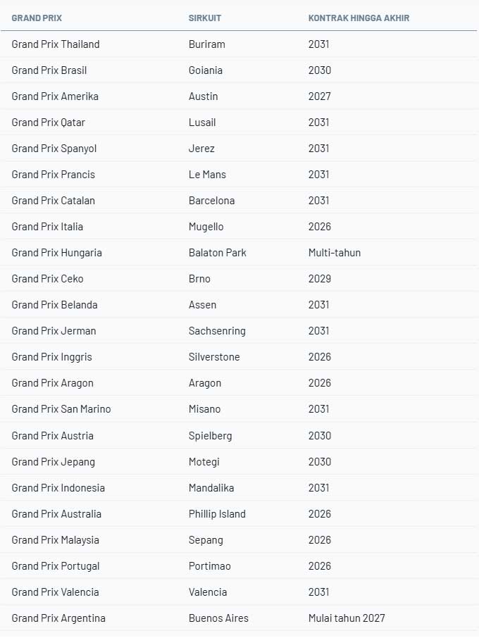 Berapa Sisa Kontrak Setiap Sirkuit Di Kalender MotoGP