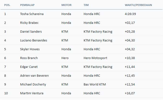 ![]() Honda telah mengakhiri rentetan kemenangan KTM di Dakar 2026. Tosha Schareina dan Ricky Brabec finis dua besar pada etape ketiga, beberapa waktu yang lalu. Dari 115 peserta yang memulai, 108 peserta masih muncul di awal etape ketiga dari dan ke Al-‘Ula yang mencakup 421 kilometer khusus. 40 kilometer pertama melewati ngarai berpasir, diikuti dengan hamparan kerikil yang cepat dan dari kilometer 127 bagian teknis dengan banyak batu. Kemudian, para pebalap dapat meningkatkan kecepatan lagi di dataran tinggi yang cepat dan di ngarai, dengan penekanan besar pada navigasi di bagian akhir etape. Meskipun di atas kertas, bagian pertama etape ini tidak terlihat sebagai tantangan terbesar, tapi tidak semua orang berhasil melewatinya tanpa cedera. Tobias Ebster, salah satu pesaing di Rally2, mengalami cedera pada tangan kirinya usai terjatuh setelah menempuh jarak 14 kilometer. Kroser Hero Motosport ini kemudian dibawa kembali ke bivak. Sebagai pereli Rally2, ia seharusnya bisa kembali berlaga tapi cedera pada pergelangan tangannya membuat perlombaannya harus dihentikan secara permanen. Hal yang sama juga terjadi pada peserta RallyGP Stefan Svitko. Pereli asal Slovenia ini terjatuh setelah menempuh jarak 140 kilometer, mengalami cedera bahu dan meminta panitia untuk membawanya kembali ke bivak. Hal ini membuat petualangannya tamat di hari keempat. Tentu saja, ada juga persaingan untuk memenangkan etape. Pada prolog dan dua etape pertama, masih KTM yang mencatatkan waktu tercepat, dengan Daniel Sanders dan Edgar Canet berada di posisi dua besar. Namun, para pemimpin klasemen tidak dapat mengganggu perebutan kemenangan sejenak di etape ketiga. Memang, pada paruh pertama etape khusus ini, Sanders dan Canet bahkan berada di luar sepuluh besar. Kroser KTM ketiga, Luciano Benavides berbicara banyak. Pebalap Argentina itu bahkan mencatat waktu tercepat setelah menempuh jarak 114 kilometer, namun kemudian harus menyaksikan Honda HRC mengambil alih. Schareina menang, Sanders mempertahankan keunggulan Tosha Schareina, peringkat empat klasemen sementara, tampil mengesankan. Setelah 167 kilometer, pebalap Spanyol ini menjadi yang tercepat di etape untuk pertama kalinya. Setelah itu, ia terus memperlebar jaraknya. Setelah menempuh jarak 421 kilometer, ia mencatatkan waktu 4 jam 26 menit 39 detik - meskipun sempat terjatuh - waktu yang terbukti lebih dari cukup untuk memberikan kemenangan etape pertama bagi Honda di Dakar 2026. Kemenangan ini bahkan menjadi kemenangan ganda bagi pabrikan asal Jepang tersebut, karena Ricky Brabec mencatatkan waktu lebih dari dua menit untuk kedua kalinya. Tanpa bonus waktu karena berada di posisi terdepan, selisih waktunya bisa mencapai empat menit. Di bagian terakhir, Brabec membalap bersama dengan Sanders di posisi terdepan. Pebalap KTM asal Amerika ini mendapatkan bonus waktu maksimal 6 menit 29 detik dan membuatnya berada di posisi ketiga pada hasil akhir hari itu - meskipun sebenarnya ia hanya berada di urutan kelima. Rekan setimnya, Benavides, turun ke posisi keempat, mengungguli Skyler Howes yang menunggangi motor pabrikan ketiga Honda dan Ross Branch sebagai pebalap Hero terbaik. Edgar Canet merosot di etape ketujuh pada paruh kedua, tertinggal 11 menit dari Schareina dan satu menit dari Adrien van Beveren. Michael Docherty berada di urutan kesembilan untuk memenangi etape Rally2, lebih dari tiga menit di depan pesaing langsungnya, Martim Ventura. Di klasifikasi umum, Sanders tetap memimpin, namun Canet menjadi pecundang besar. Ia turun dari posisi kedua ke posisi keempat. Posisi kedua dan ketiga kini ditempati oleh Brabec dan Schareina. Pada Rabu, etape keempat dijadwalkan. Pada bagian pertama etape maraton, para pebalap harus menempuh jarak 417 kilometer dari Al-‘Ula ke bivak minimum, di mana hanya ada tenda, api unggun, dan ransum yang menunggu mereka. Tidak ada bantuan dari luar untuk perbaikan. Hasil Etape 3 Dakar 2026 - Motor : ![]() Sumber : id.motorsport.com