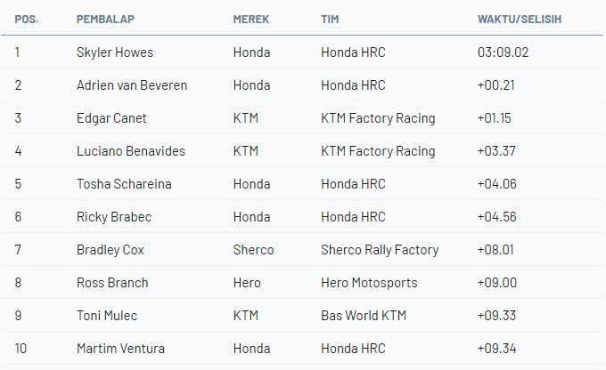 Etape 11 Dakar 2026 - Motor : Howes Menang, Benavides Puncaki Klasemen Lagi