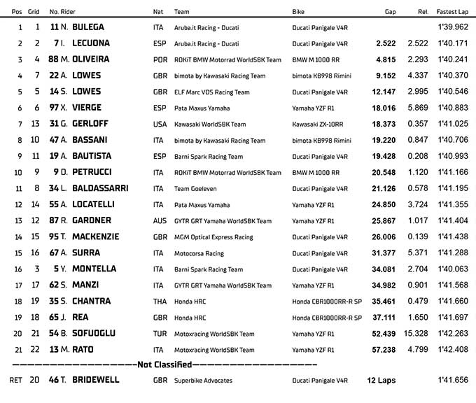 Race 1 WorldSBK GP Portugal 2026 : Bulega - Lecuona Finish 1-2