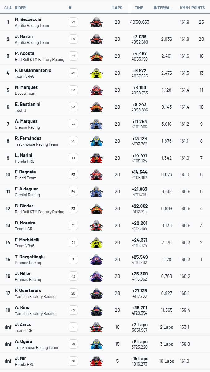 Race MotoGP GP Amerika Serikat : Bezzecchi P-1, Aprilia 1-2